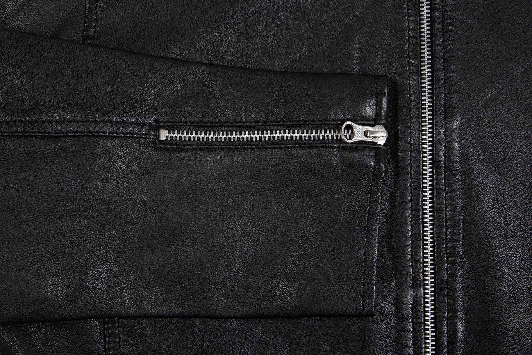 George is a classic shape crafted from premium veg tanned lamb leather with a clean finish. A slim front panel and sleeves refine the fit while multiple pockets keep it functional